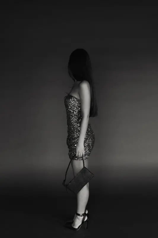 Turn heads with this Sequin Strapless Cowl Bottom Skirt Mini Dress, the perfect choice for festive celebrations, cocktail parties, or New Year's Eve. Featuring a shimmering sequin design, a flattering strapless neckline, and a draped cowl bottom for added elegance. This mini dress exudes confidence and glamour. Pair with strappy heels for a dazzling night out.