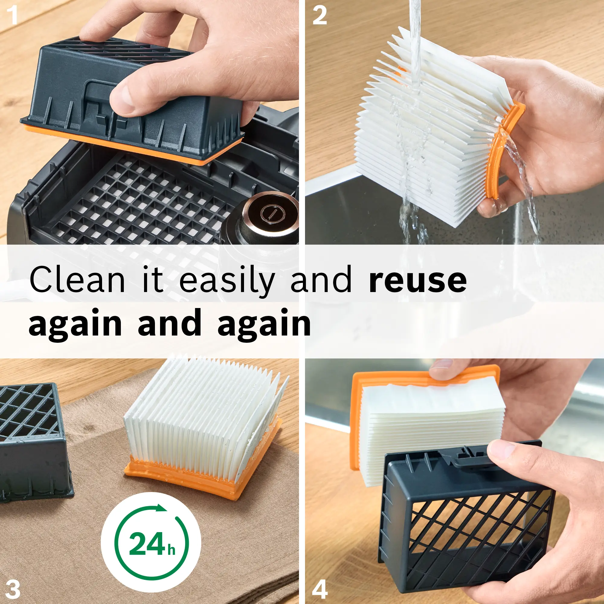 Filter :HEPA hygienic filter, Washable filters