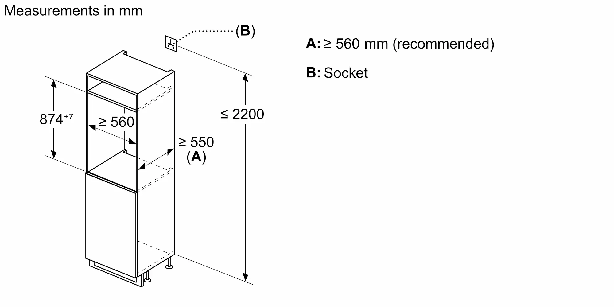 Minimum width for installation :560