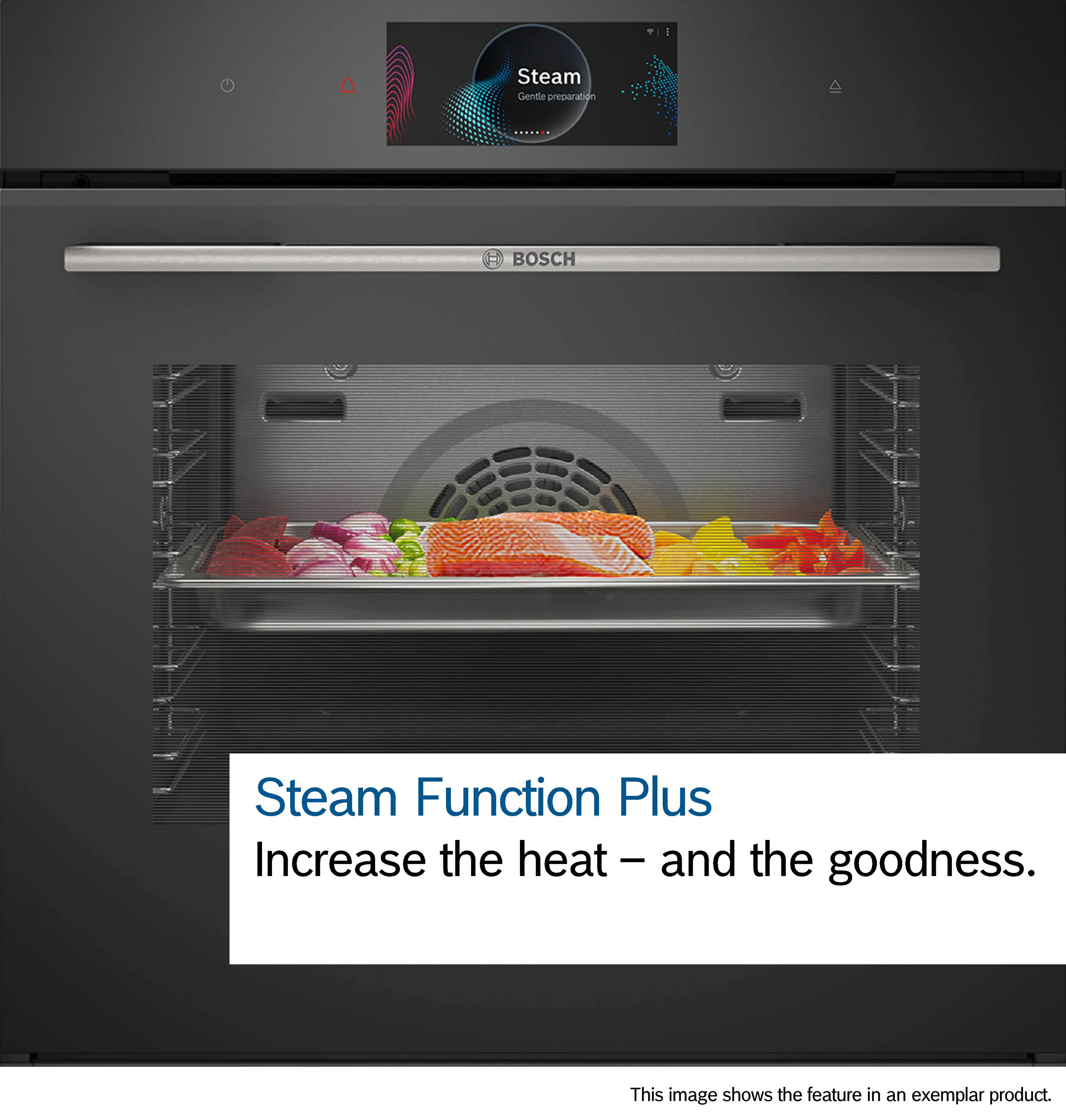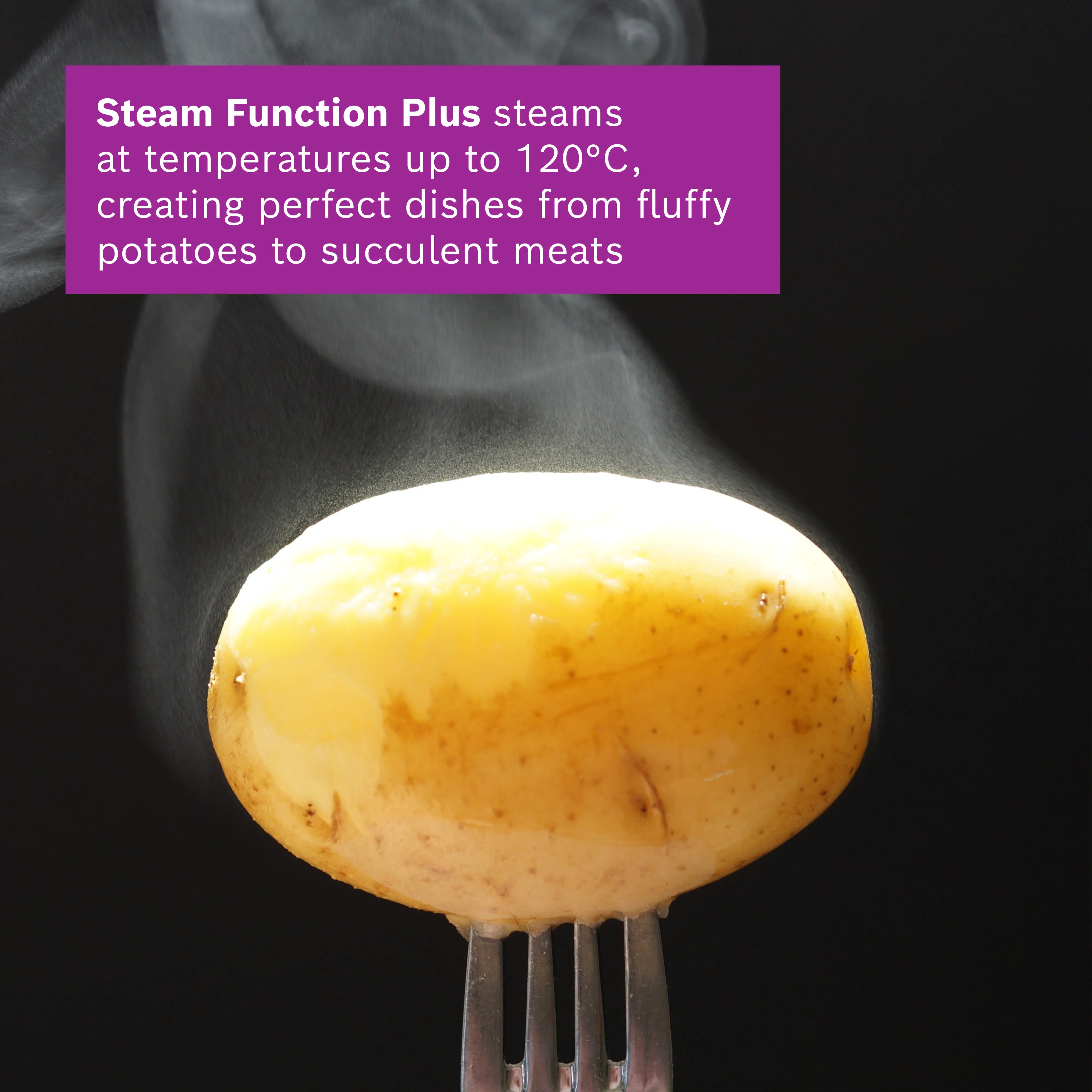 Steam technology :Steam Function Plus 120°C – your dishes retain even more of their vitamins and nutrients and are done faster