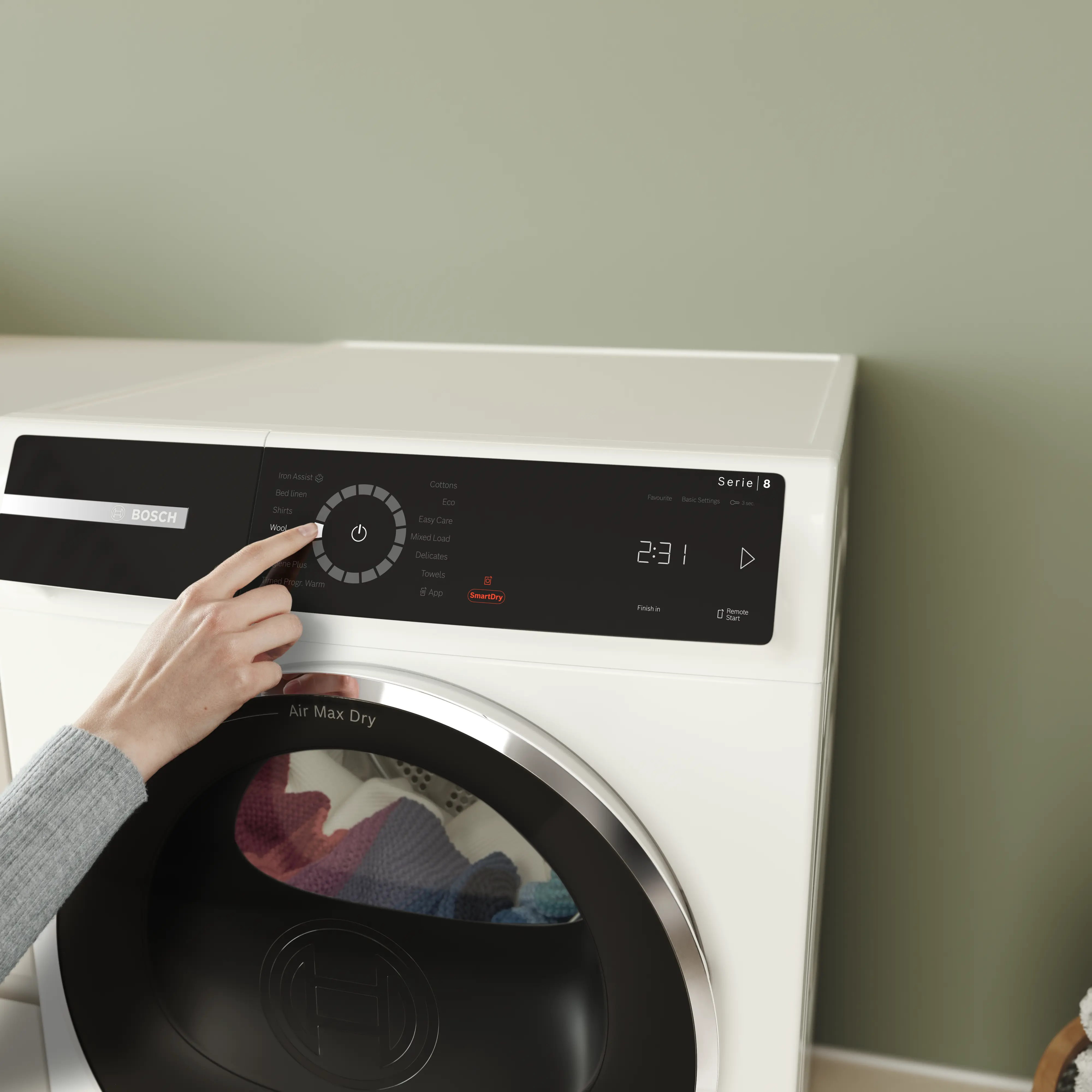 Additional operational options :Cotton, Sheets, Shirts/blouses, Cotton Eco, Delicates, Towels, Hygiene, Refresh-program for wrinkle reduction and easy ironing, Mixture, Silent dry, Woollens program, Synthetic, Time program warm