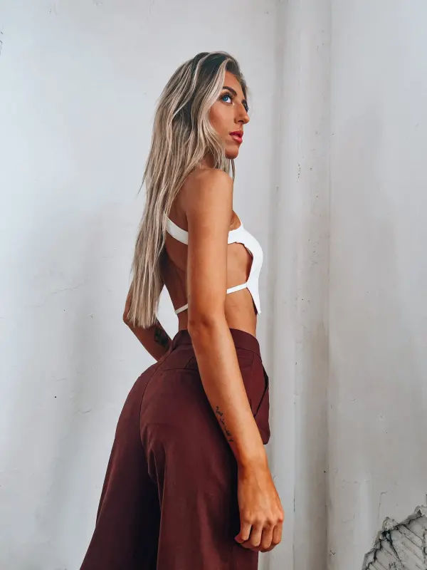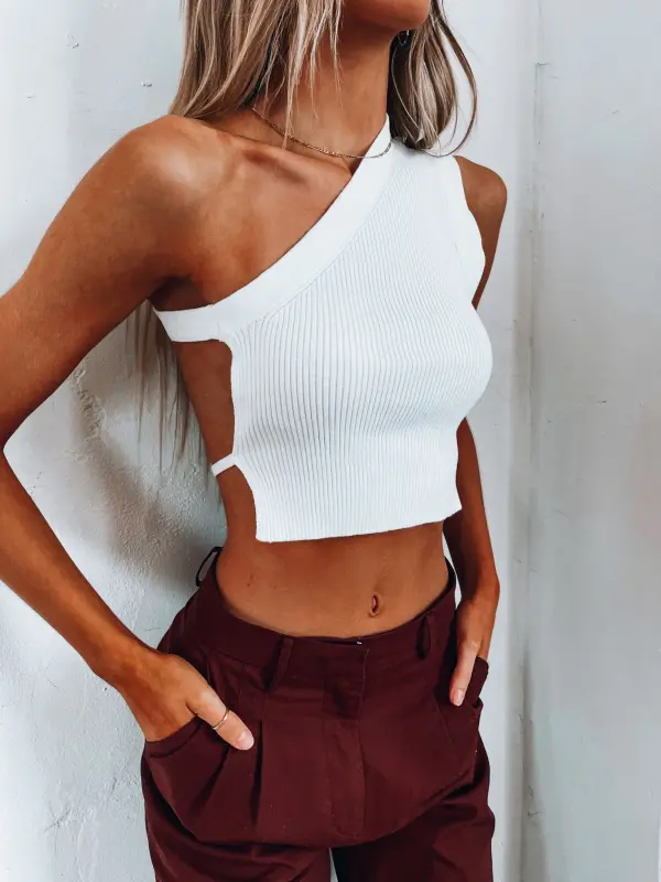 Our Kennan White One Shoulder Crop is a fitted crop top. This one shoulder top has an open back detail with a thin adjustable bottom back strap. This top would look so cute with any bottom!