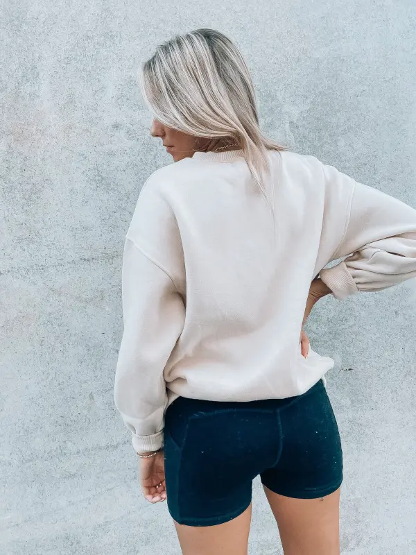 Embrace comfort and style with our Long Sleeve Fleece-Lined Crewneck Sweatshirt. This cozy essential features a crewneck design, long sleeves, and a full-length bodice, ensuring warmth and coverage during cooler days. The relaxed fit silhouette offers ease of movement and a laid-back vibe. Crafted from sweatshirt material with fleece lining, it provides softness and insulation for added comfort. True to size, or size up for a more oversized fit, this sweatshirt is perfect for layering or wearing on its own. Elevate your casual wardrobe with this versatile piece, ideal for everyday wear.